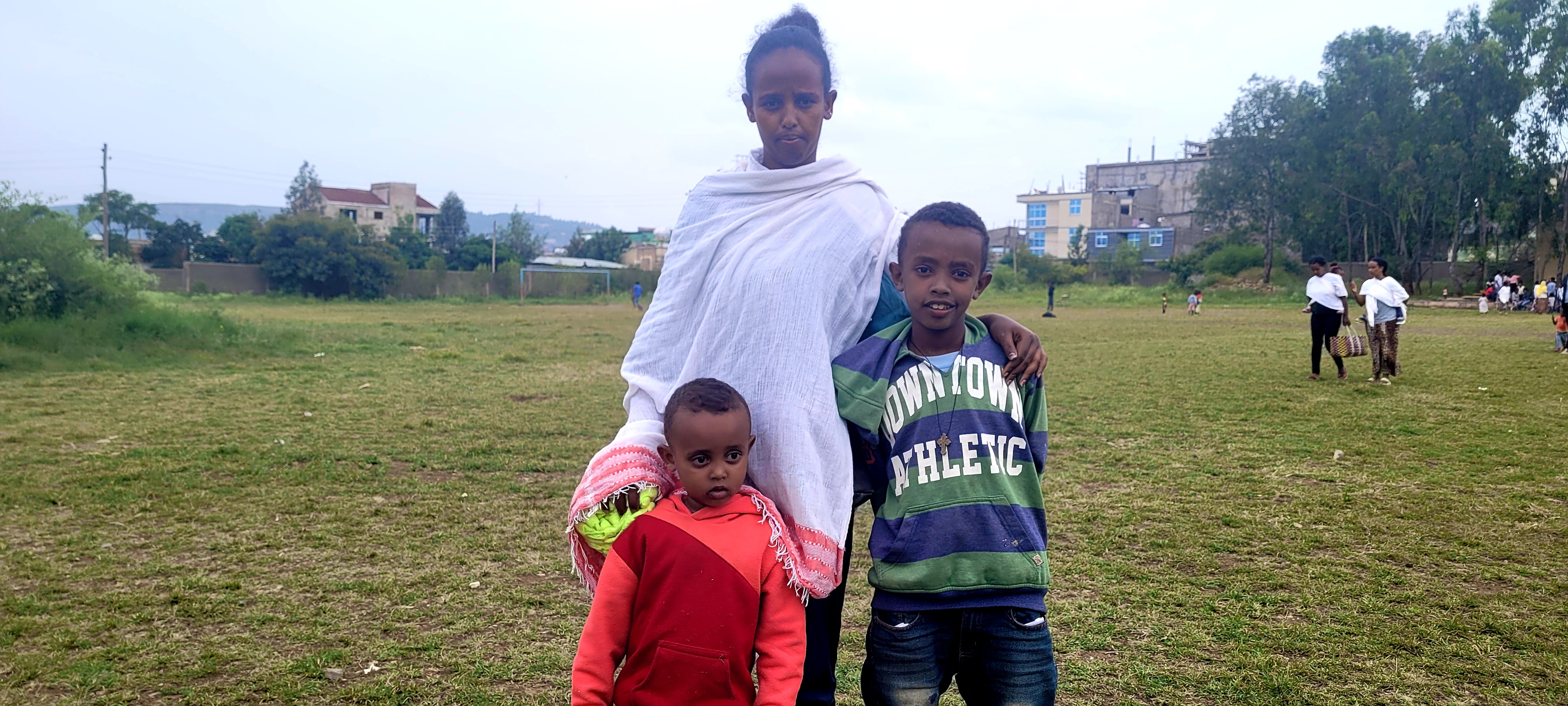 As the conflict intensified, Alem fled with her children to Mekelle, Ethiopia. She was living in a cramped collective center along with many other displaced people where they experienced food shortages and an overall lack of support. It is especially challenging for those with children, she says. Alem was very happy with the items she received from ShelterBox, especially the cooking pots and blankets.