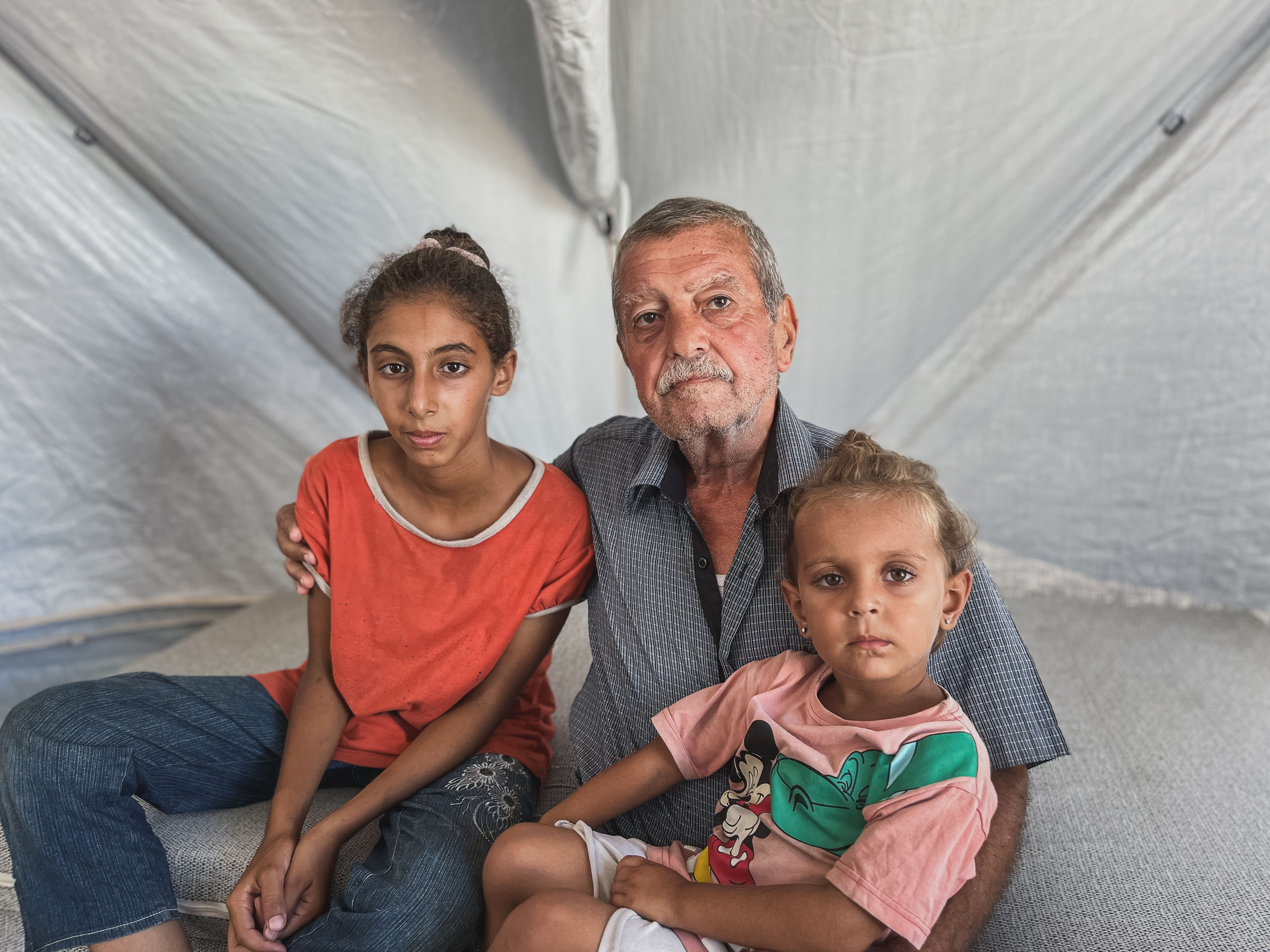 The tent, along with essential items like bedding, blankets, and water carriers, has brought them much-needed relief. Salman reflects on the loss of his home and separation from his children, who remain scattered across other camps, saying, “We don’t know when we’ll be reunited.” Despite the challenges, he holds onto hope for a future where his family can be together again and rebuild their lives.
